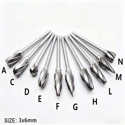1/8"Shank Dia) 3X3mm Carbide Burrs Set (1/4"Shank Dia) 3X6mm Carbide Burrs Set Conjunto de Burrs personalizados |